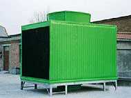 塔體、水槽及面板均采用具有良好耐腐蝕性能的FRP材質,并在膠衣樹脂中加有光穩定劑,具有良好的抗老化性能,經久不變色。塔體鋼結構件在加工后采用鍍鋅處理,提高冷卻塔的耐腐蝕性能,在正常使用壽命內,不需另外防腐。